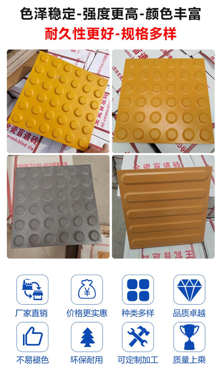 市政人行道盲道磚鋪貼 300*400*25mm長方形釉面防滑條導向磚J